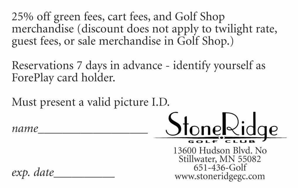 This is a discount card for the StoneRidge Golf Club.